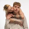 Kissing a guy's neck and shoul